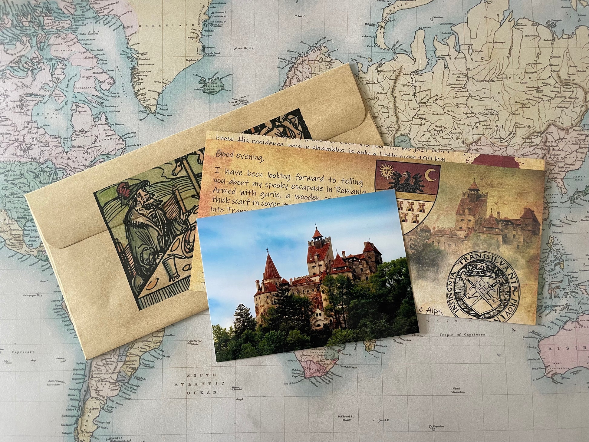 - The paper letter includes the envelope, a real stamp, the letter and a photo of Bran Castle.