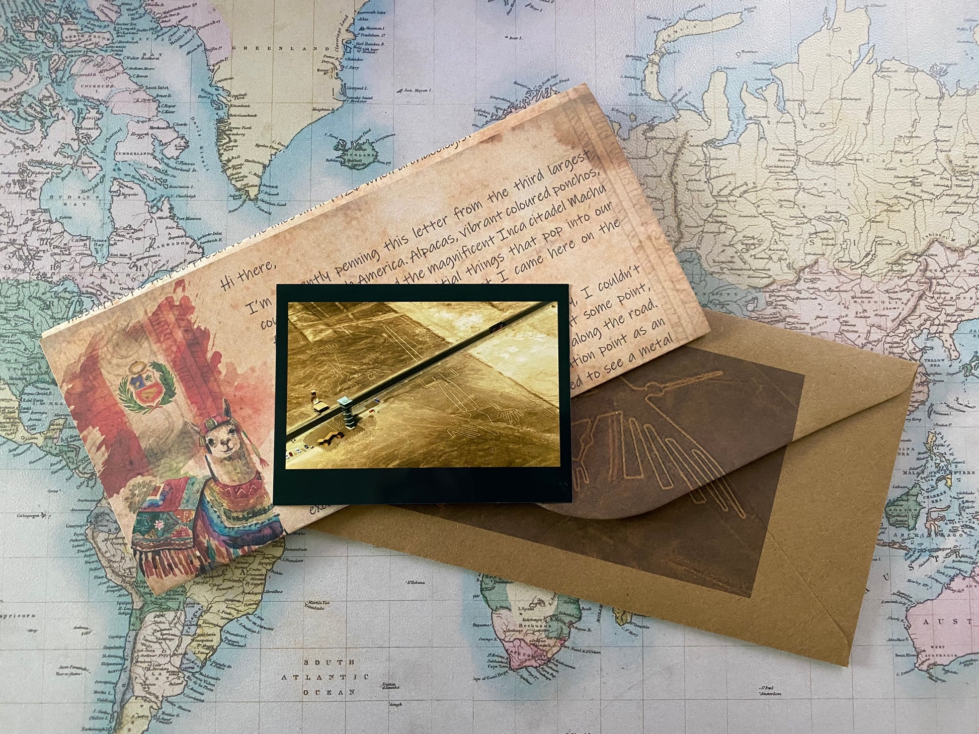 - The paper letter includes the envelope, a real stamp, the letter and an areal photo of the lines.